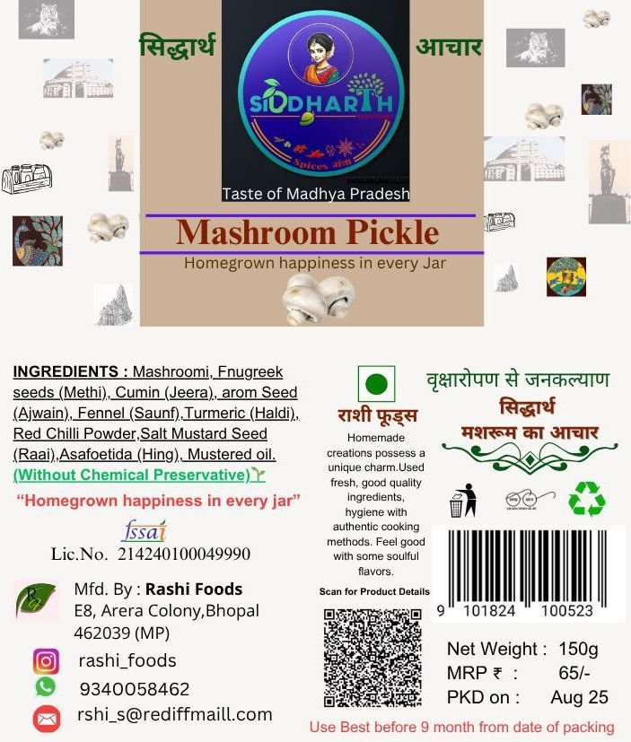 | Ingredients | Turmeric Powder, Salt, Mustard Oil, Mushroom, Chili Powder |
